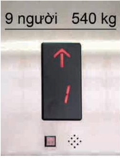 Quan sát thông tin ở hình bên, ta biết thang máy này cho phép tổng khối lượng những người di chuyển trong một lần nặng nhất là 540 kg. Để tiện lợi cho việc sử dụng, người ta quy định số người tương ứng với 540 kg là 9 người.