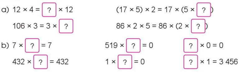 - Tính chất kết hợp: Khi nhân một tích hai số với số thứ ba, ta có thể nhân số thứ nhất với tích của số thứ hai và số thứ ba.