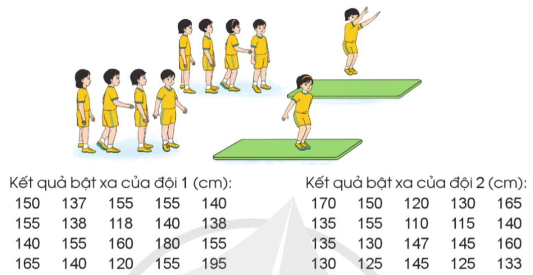 Kết quả bật xa của đội 1 và đội 2 được ghi lại như sau:
