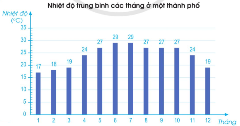 Em quan sát nhiệt độ trung bình các tháng ở một thành phố trên biểu đồ và nêu nhận xét
