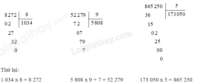 Thực hiện phép chia rồi thử lại bằng phép nhân.