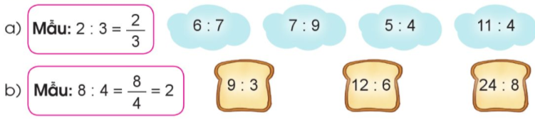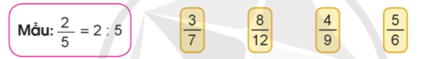 Viết mỗi phân số dưới dạng thương của hai số tự nhiên (theo mẫu):