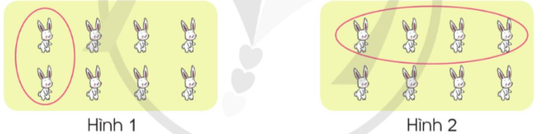 Ta thấy: Các con thỏ trong hình 2 được xếp thành 2 hàng, mỗi hàng đều có số thỏ bằng nhau, đã khoang vào 1 hàng.
