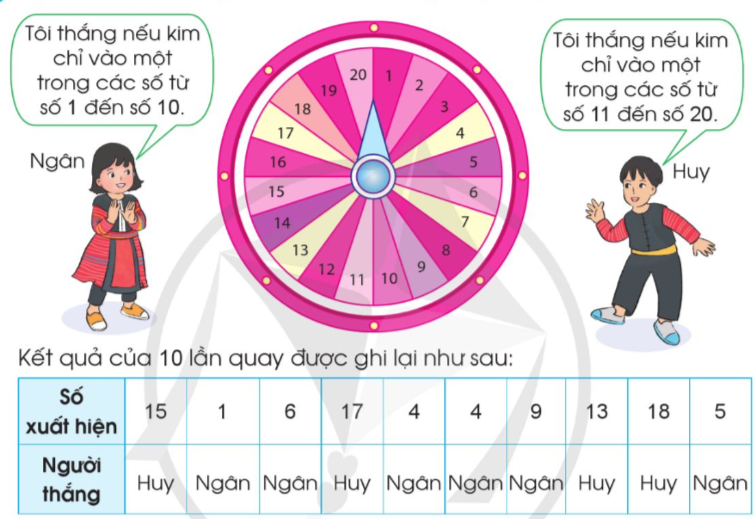 Dựa vào thông tin trong bảng, em đếm số lần thắng của bạn Ngân và bạn Huy.