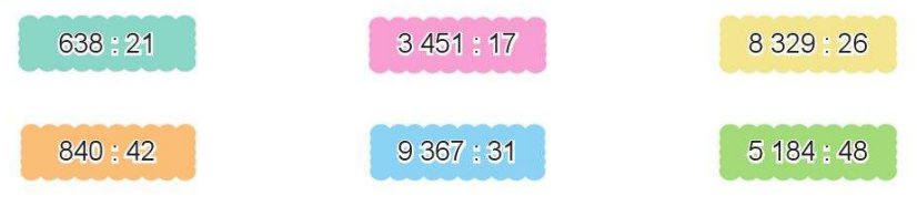 Thực hiện các phép chia rồi nối với ngôi nhà thích hợp.