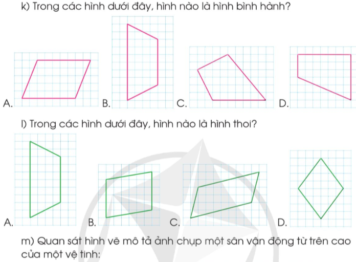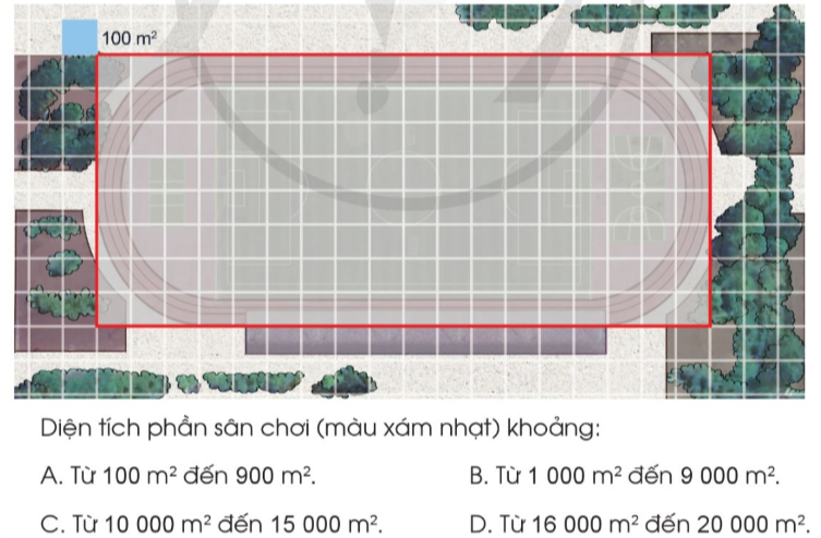 m) Trên hình vẽ có 144 ô vuông. Mỗi ô vuông có diện tích 100m2