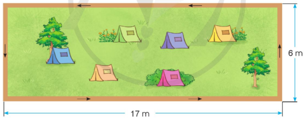 Bước 1: Chu vi khu cắm trại = (chiều dài + chiều rộng) x 2