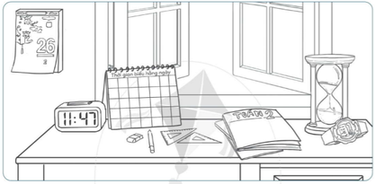 Những vật chỉ thời gian trong nhà: lịch treo tường, đồng hồ để bàn, đồng hồ đeo tay, đồng hồ cát, thời gian biểu.