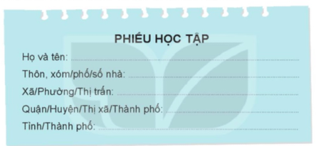 Hãy điền vào phiếu học tập địa chỉ quê hương em.