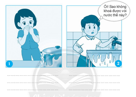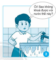Vòi nước trong nhà vệ sinh không khóa được. Nếu là em, em sẽ gọi bố mẹ (nếu ở nhà) hoặc bác bảo vệ, bác lao công (nếu ở trường) để thông báo ngay cho người lớn sửa chữa