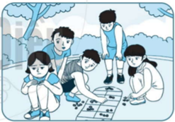Hoa chơi ô ăn quan cùng các bạn. Chờ mãi chưa đến lượt nên Hoa giận dỗi, không chơi cùng các bạn nữa.