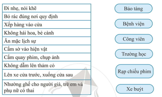 Em hãy nối mỗi quy định với những nơi công cộng cho phù hợp.
