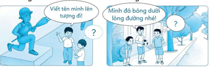 Em hãy viết nhận xét về việc làm của bạn trong mỗi tranh dưới đây: