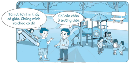 Em sẽ: khuyên bạn Tân không nên có suy nghĩ như vậy, cần phải chào hỏi cô lịch sự ở mọi nơi chứ không chỉ ở trường.