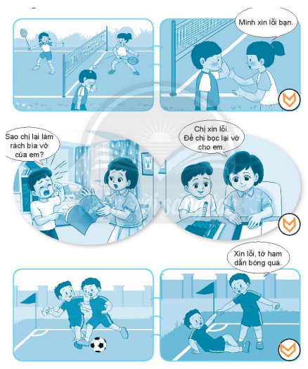 Tình huống 3: Trong lúc đá bóng, bé trai vô tình đẩy ngã bạn. Sau đó, bé trai tiến đến xin lỗi bạn.