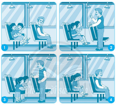 Kể chuyện: Trên xe buýt, Thành và Hoa vô tư nói chuyện cười đùa, không chú ý đến mọi người xung quanh. Một cụ ông ở hàng ghế trước đứng dậy, phê bình hành vi không đúng của Thành và Hoa. Thành và Hoa đã đứng dậy xin lỗi cụ ông. Sau đó, cả hai đã giữ im lặng trong suốt chuyến đi.