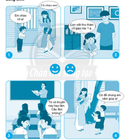 Nối mặt cười với việc em đồng tình; nối mặt mếu với việc em không đồng tình.