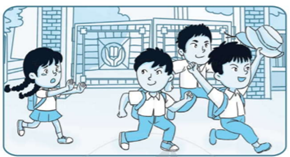 Tình huống 1: Mai đang đứng trước cổng trường và bị một nhóm bạn nam giật mũ chạy đi.