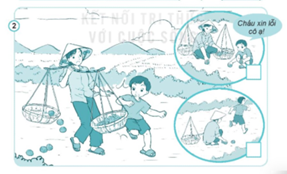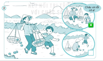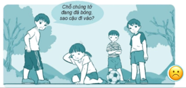 Hình 2: Em vô tình đá cầu vào đầu cô hàng xóm khiến cô bị đau.