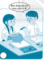 Bé trai cho bạn mượn bút chì màu khi bạn gái quên mang theo.