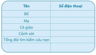 Em hãy điền các số điện thoại trợ giúp vào bảng sau: