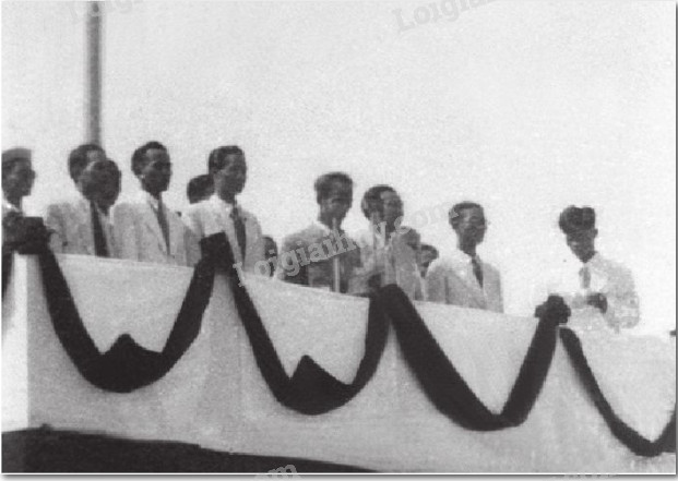 Hình 1.7. Chủ tịch Hồ Chí Minh đọc bản Tuyên ngôn độc lập tại Quảng trường Ba Đình, Hà Nội (2-9-1945), thành lập nước Việt Nam Dân chủ Cộng hòa
