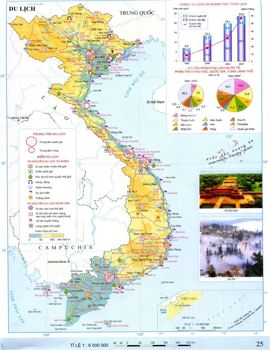 Ví dụ: Thông qua bản đồ du lịch Việt Nam, học sinh biết được các trung tâm du lịch, điểm du lịch (tự nhiên và nhân văn),... trên cả nước.