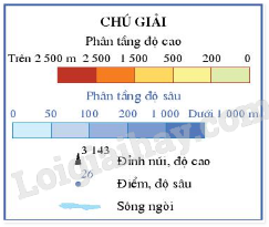 - 3 đối tượng địa lí được thể hiện trên bản đồ tự nhiên là: phân tầng độ cao, phân tầng độ sâu, sông ngòi.