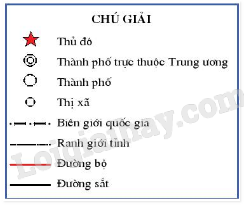 - 3 đối tượng địa lí được thể hiện trên bản đồ hành chính là: Thủ đô, thành phố, thị xã.
