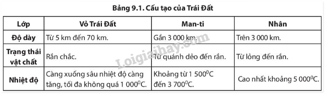 Hình 9.1. Cấu tạo của Trái Đất