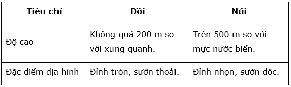 4. Hãy cho biết điểm khác nhau giữa núi và đồi.