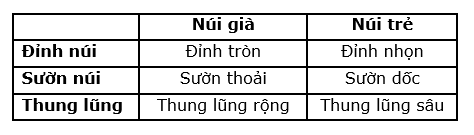 1. Đặc điểm khác nhau của núi già và núi trẻ