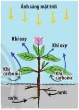 Hình 12.3. Quang hợp ở lá cây tạo thành chất hữu cơ và khí oxy