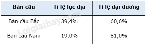 - Tỉ lệ diện tích lục địa và đại dương ở bán cầu Bắc.