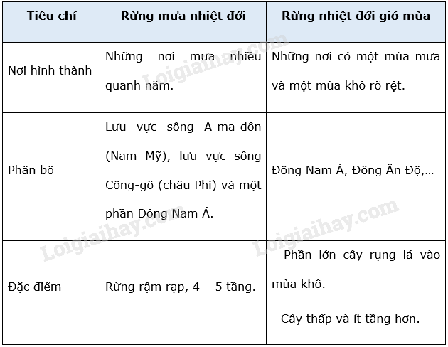 - Nêu sự khác nhau của rừng mưa nhiệt đới và rừng nhiệt đới gió mùa.