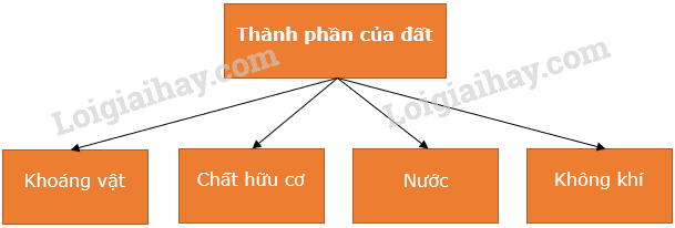 1. Thành phần của đất gồm: Khoáng vật trong đất, chất hữu cơ trong đất, nước trong đất và không khí trong đất.
