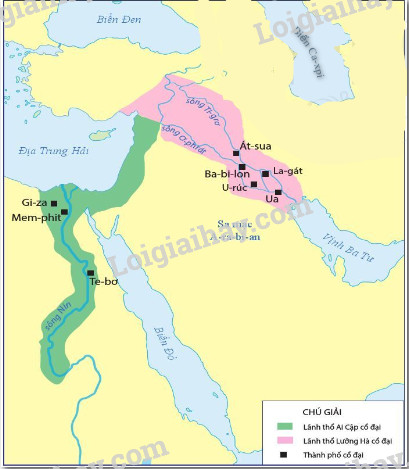Hình 6.1. Lược đồ Ai Cập và Lưỡng Hà cổ đại