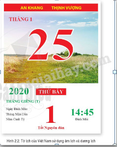 Quan sát hình 2.2 và cho biết tờ lịch ghi ngày dương lịch là ngày nào, âm lịch là ngày nào?
