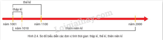 Quan sát lược đồ hình 2.4, hãy cho biết mỗi thập kỉ, thế kỉ là bao nhiêu năm.