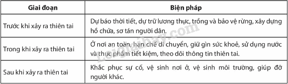Bảng 14.1. Các giai đoạn và biện pháp phòng tránh thiên tai
