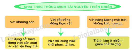 3. Dựa vào sơ đồ trên và hình 1, em hãy lấy ví dụ cụ thể về các biện pháp khai thác và sử dụng thông minh tài nguyên thiên nhiên.