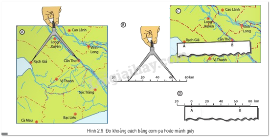 Dựa vào hình 2.9, hãy tính khoảng cách từ Bạc Liêu đến Sóc Trăng.