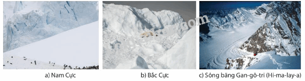 Hình 16.5. Băng hà ở hai vùng cực và trên núi