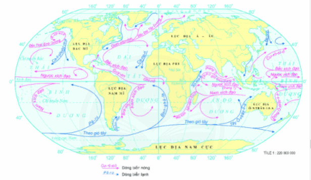 - Hướng chảy của các dòng biển nóng, dòng biển lạnh: