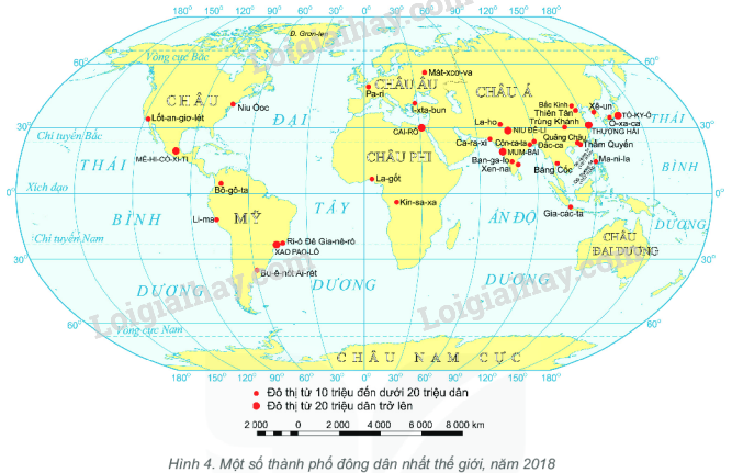 + Xác định các siêu đô thị: Siêu đô thị là: Thành phố có quy mô dân số từ 10 triệu người trở lên.