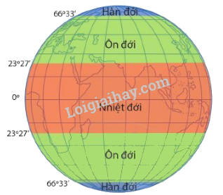 Hình 14.5 Các đới khí hậu trên Trái Đất