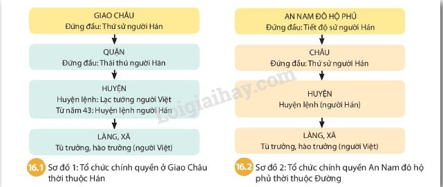 Đọc thông tin trong bài, quan sát sơ đồ 16.1,16.2 và hình 16.3, em hãy cho biết chính quyền đô hộ phương Bắc đã thi hành chính sách cai trị gì đối với nước ta?