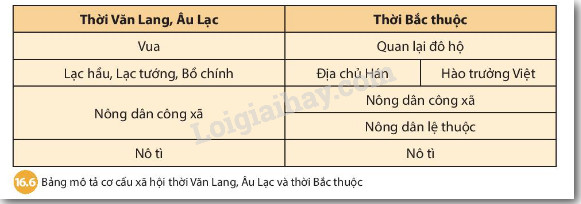 Quan sát tư liệu 16.6, hãy nêu những chuyển biến trong cơ cấu xã hội nước ta thời Bắc thuộc so với thời Văn Lang, Âu Lạc.