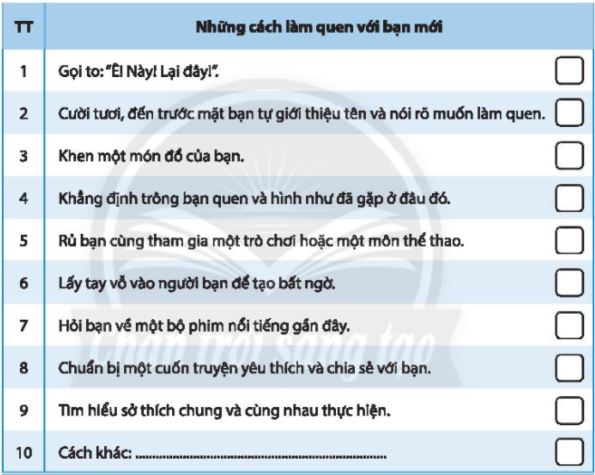 Đánh dấu X vào ô phù hợp với cách làm quen bạn mới của em.