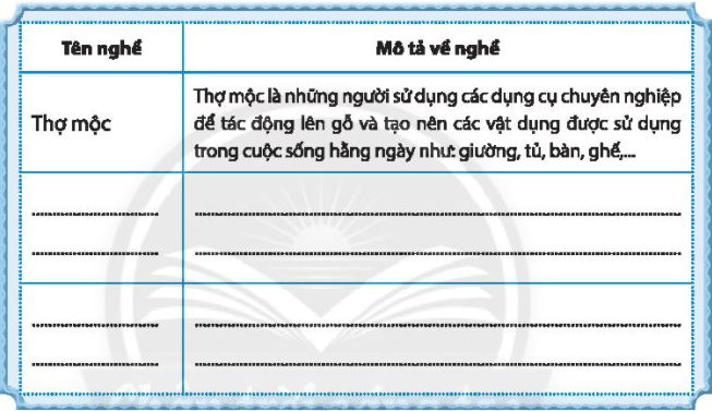 Hãy liệt kê và mô tả các nghề đã góp phần làm nên ngôi nhà của gia đình em.